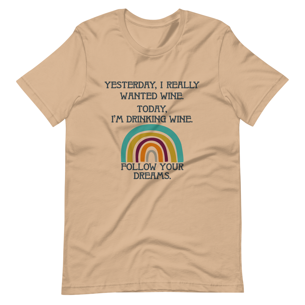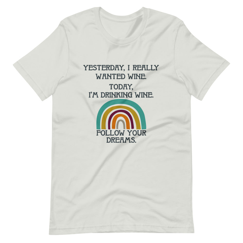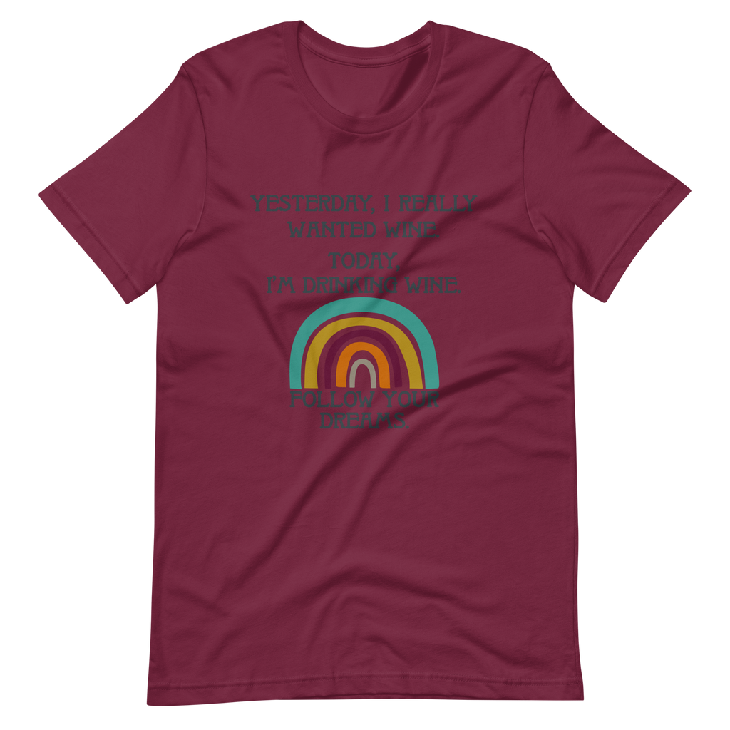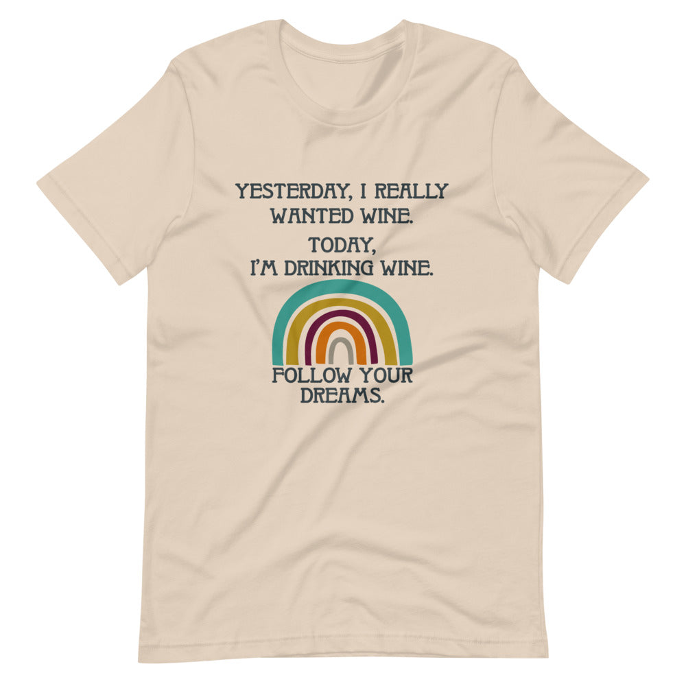 / Wanted Wine, Drinking Wine, Follow Your Dreams, Short-Sleeve Unisex T-Shirt