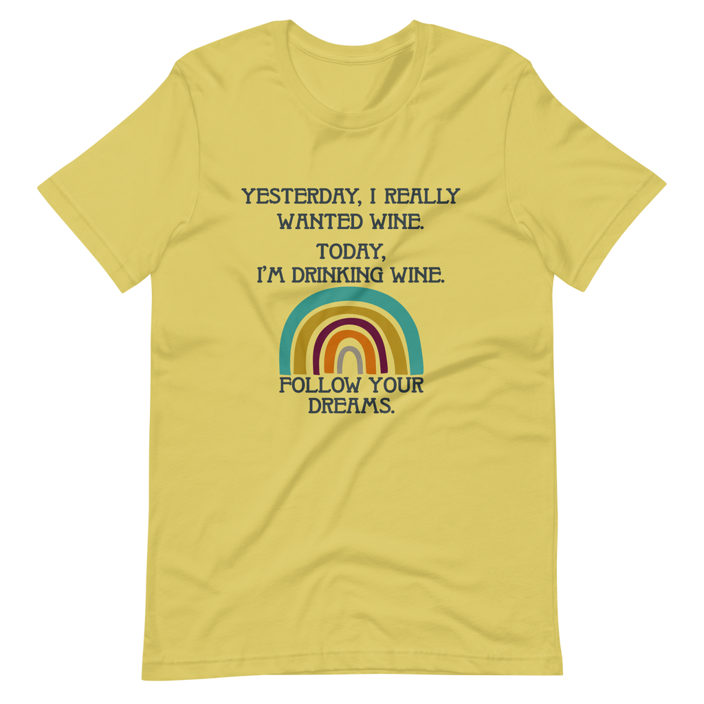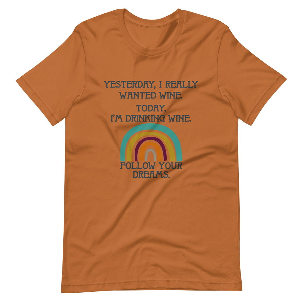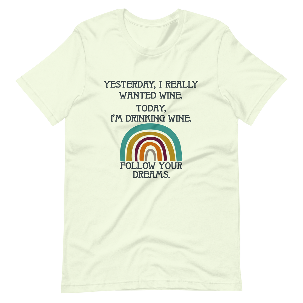 / Wanted Wine, Drinking Wine, Follow Your Dreams, Short-Sleeve Unisex T-Shirt